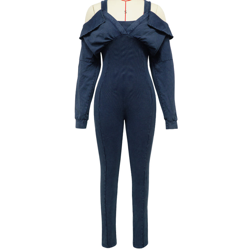 Distressed Off-Shoulder Bodycon Jumpsuit