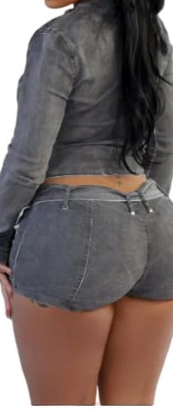Y2K Denim Zip Up Cropped Jean Jacket Shorts Sets